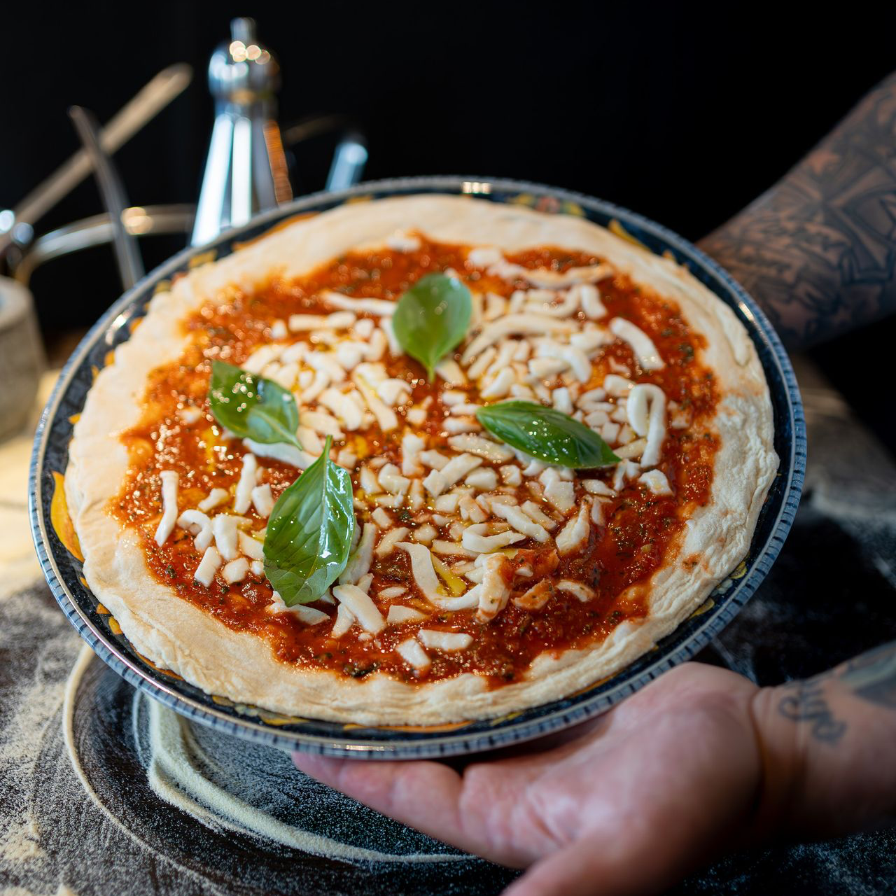 Chaque pizza est étalée à la main, garnie avec soin, puis cuite à haute température pour révéler toutes ses saveurs.